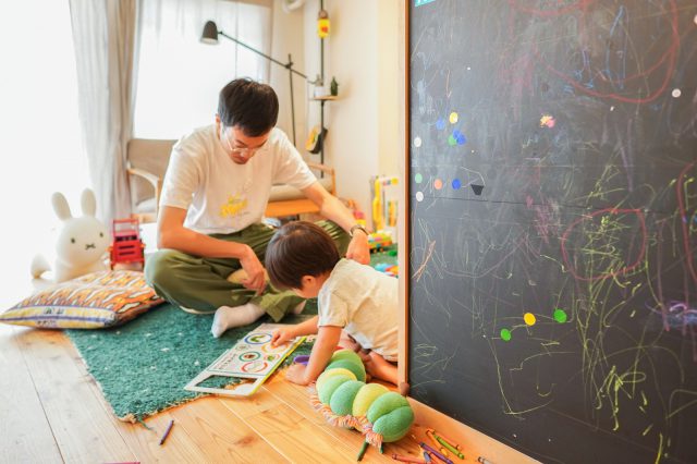 息子さんが歩き回るようになり、以前の住まいが手狭になったことから住み替えを計画。次に引っ越すなら自分たちに合う住まいにしたいと、リノベーションができる中古マンションを探しました。決め手になった点を伺うと「ゴミ置場がきれいで、修繕履歴からきちんと手入れされてきたことがわかったので」と奥様。次は設計・施工会社探しです。他社にも依頼しましたが、間取りに希望が反映されていなかったり、奇抜だったりしたことから見送ることに。そんな中、知人をきっかけに知った相羽建設のプランは「希望を汲みつつ、広さとほどよい区切りがあって暮らしをイメージできたんですよね」とご主人。奥様も「大工さんも自社なので、安心感がありました」と決め手を教えてくださいました。コロナ禍で設計当時とはライフスタイルが変化しましたが、どのように過ごされているのか、現在の暮らしぶりを伺いました。