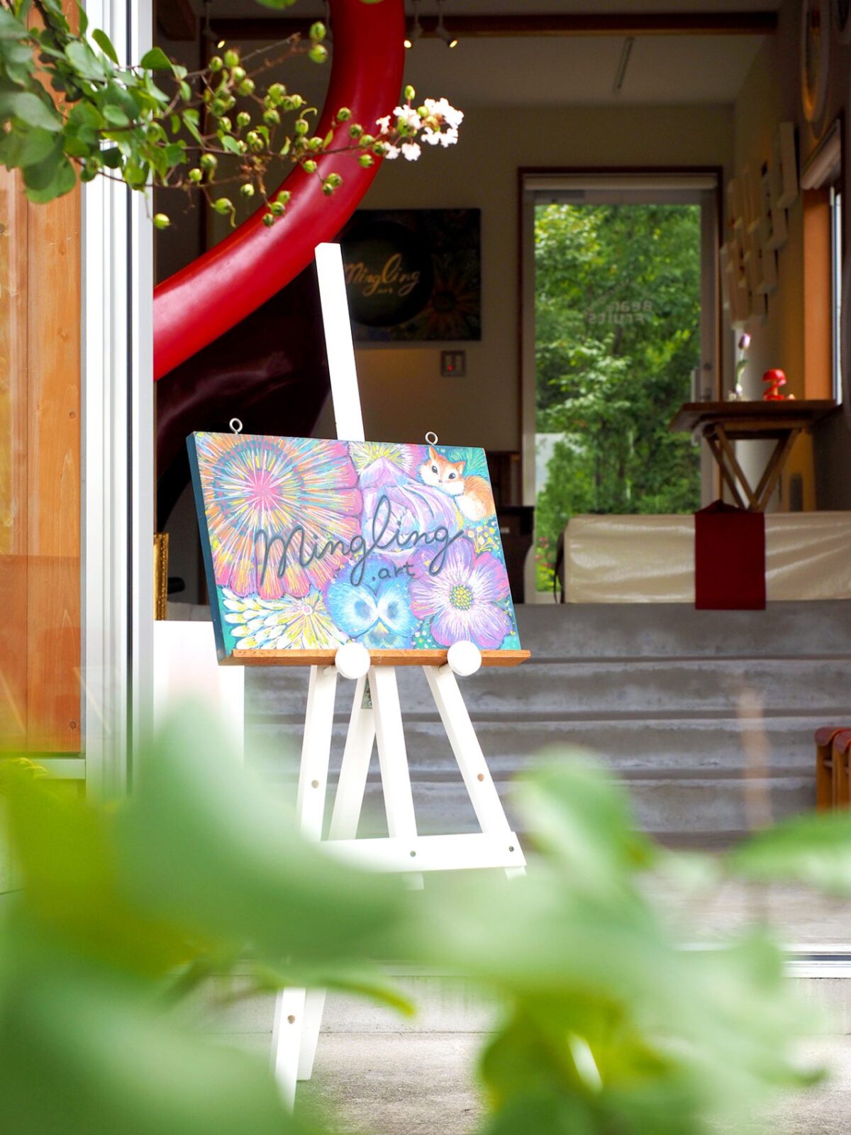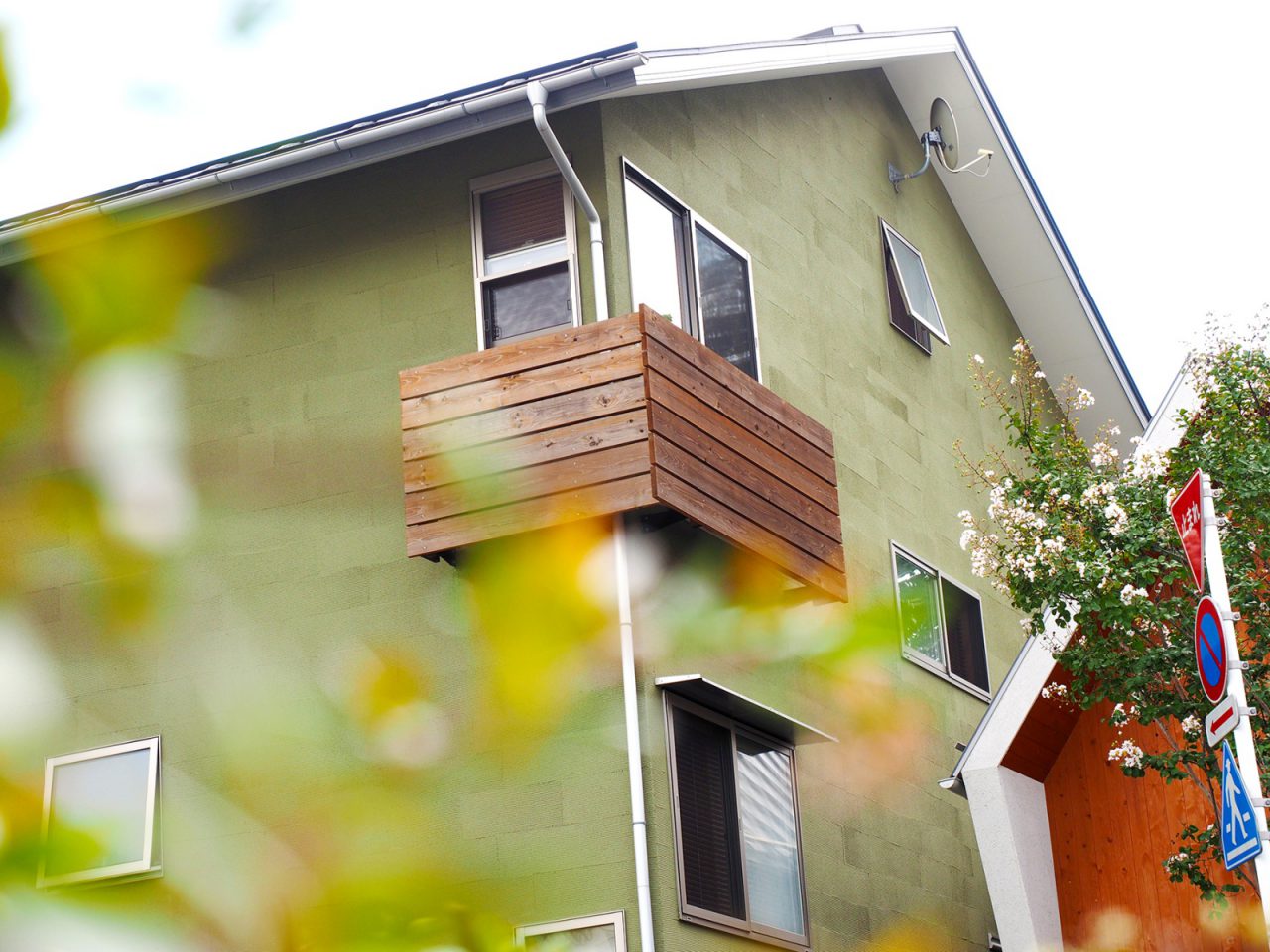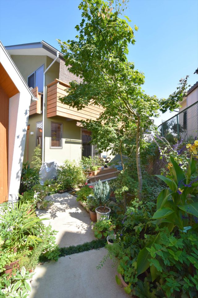 お散歩や通勤中の人々が行き交うゆったりとした並木道のそばに、Ⅰ様の住まいはあります。そして家の前には可愛らしい小さなギャラリーも。