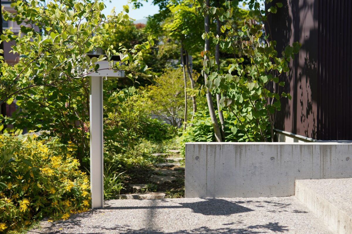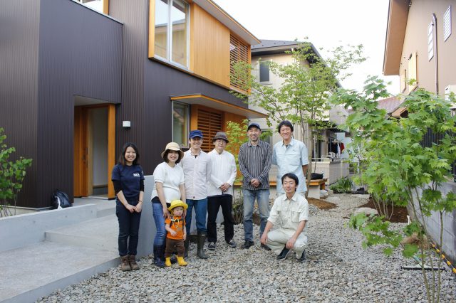 A 様邸では2年前の新築時に植栽ワークショップを開催。小林賢二さんの指導のもと、参加者とともに植えた木々の成長は家族の楽しみになっているそう。「庭の話をするのが夫婦の日課になっています。自分達で剪定の本を読んで勉強したり、愛着を持って成長を見守ってます」と笑顔で語って下さいました。
