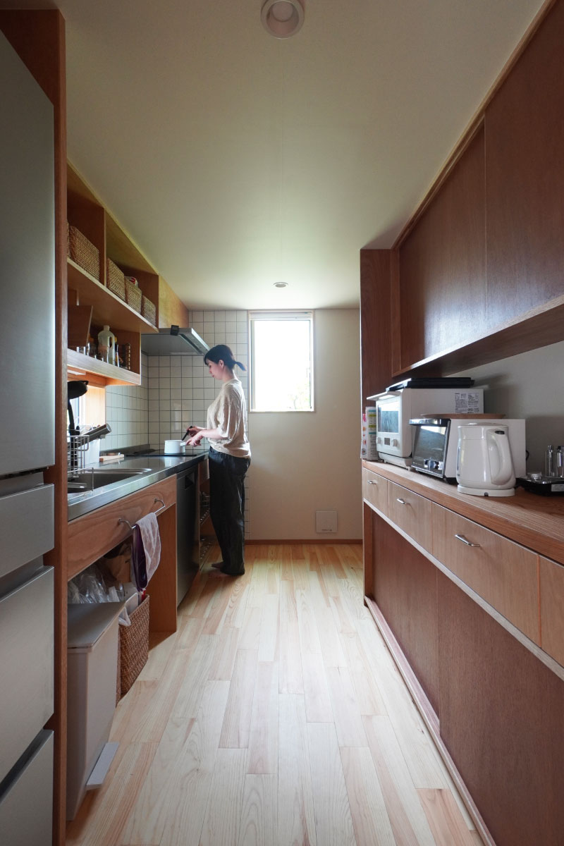 夫婦で左官体験をしたり、コルクタイルを貼ったり、自分たちの手で家をつくっていく感覚があったというお二人。実は古民家改修での家づくりも視野に入れていたほど古い家の雰囲気や昔の街並みが好きなのだといいます。「地域の材で、地域の人によってつくられた家は、気候風土や材に対して最適な構法・デザインでつくられています。そういった昔の家のあり方に共感しています」と小林大工。