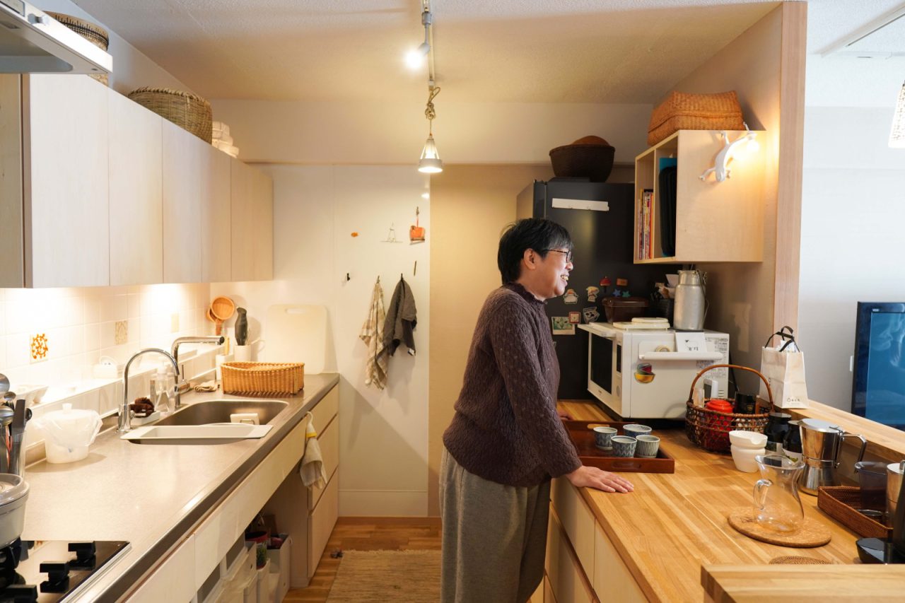 器や道具にも一つ一つこだわりの使い方やエピソードが。奥様の“ものを見る眼”がT邸のリノベーションに存分に発揮されています。それが際立っているのが収納。キッチンの収納は、奥まで手が届くように引き出しを多く採用しています。たくさんあったキッチンツールもリノベーションを機に整理されたそうで、残っているものは精鋭ばかり。「キッチンをこだわっているうちに、そのほかの場所もどんどんアイディアが浮かんでしまって。設計の中村薫さんにはその都度的確なレスポンスをいただけて、安心してお話を進めることができました」と奥様。押し入れを無くして空間を広げた分、少しでも収納を増やしたかったのだとか。工事後も造作の収納を依頼していただいたり、リノベーションを機に住まい方を考えるようになったと、楽しそうにお話ししてくださいました。
