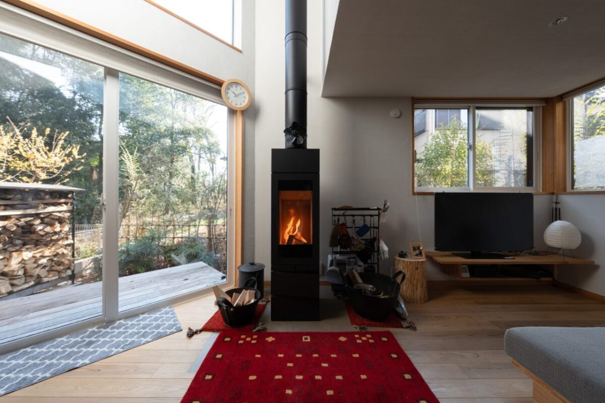 旦那様も、「この家は前の家より少々狭くなったんですが窮屈さを感じることは全くなくて、家は広ければいいわけではないと実感しました。光、緑、炎・・・と五感が刺激されて心が豊かになったと感じます。毎日早く家に帰りたいですよ」と笑いながら語ってくださいました。