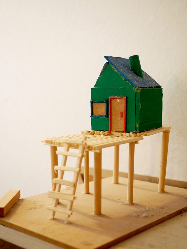 小さな森のある緑色の家