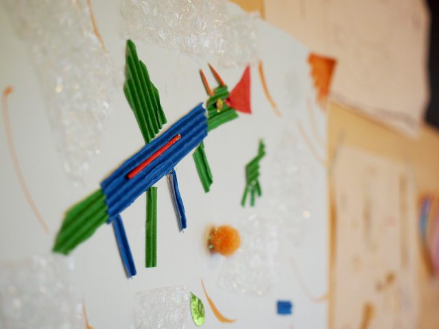 家に飾られた子どもたちの作品。