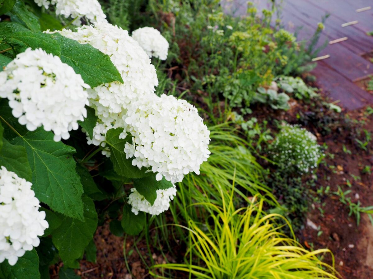 家の一室を改装した、奥様自ら施術をするアロマテラピーサロン(2018年4月にオープン)。自宅の利点を活かして庭には精油の原料となるハーブ類(観覧用)も植えられていました。