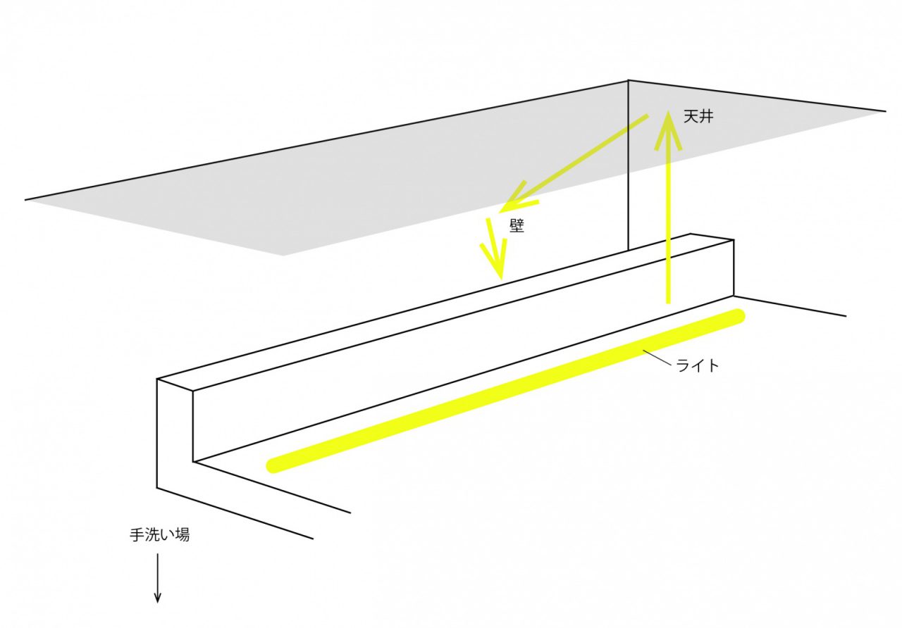 ここは、光を天井で反射させ、さらに壁に反射させるという、2段階の反射光なのです!