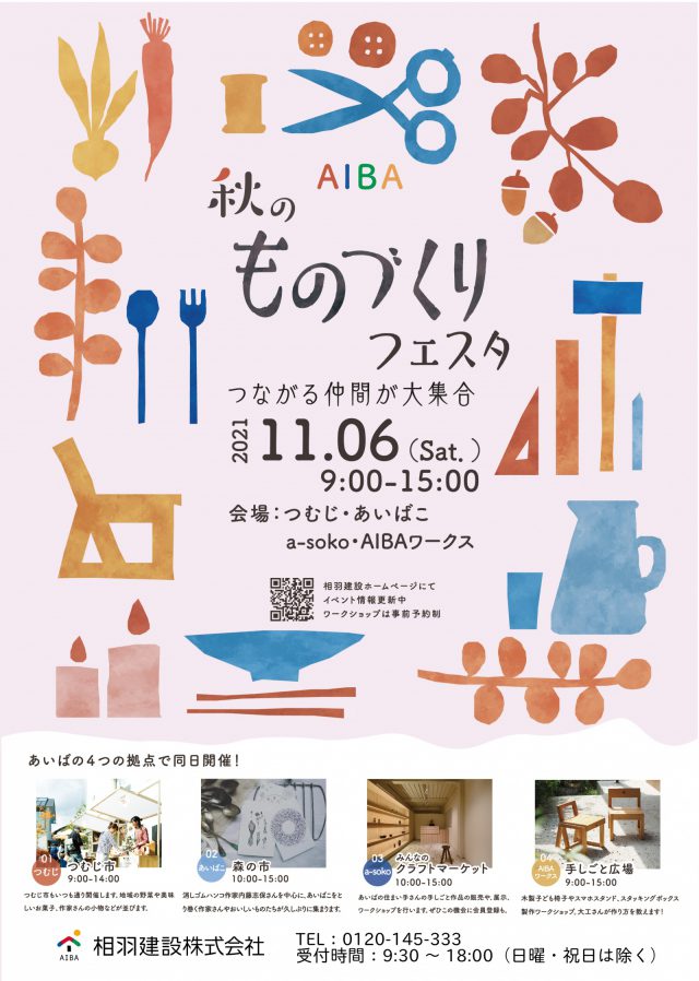 オープン当初よりリモートワークや密をさけるといったことが主流となりイベント活用も配慮が必要となって1年半、今回AIBA住まい手作家さんによる「みんなのクラフトマーケット」開催は、相羽建設のめざした『a-soko』 の場をようやく形で示せたイベントとなりました。