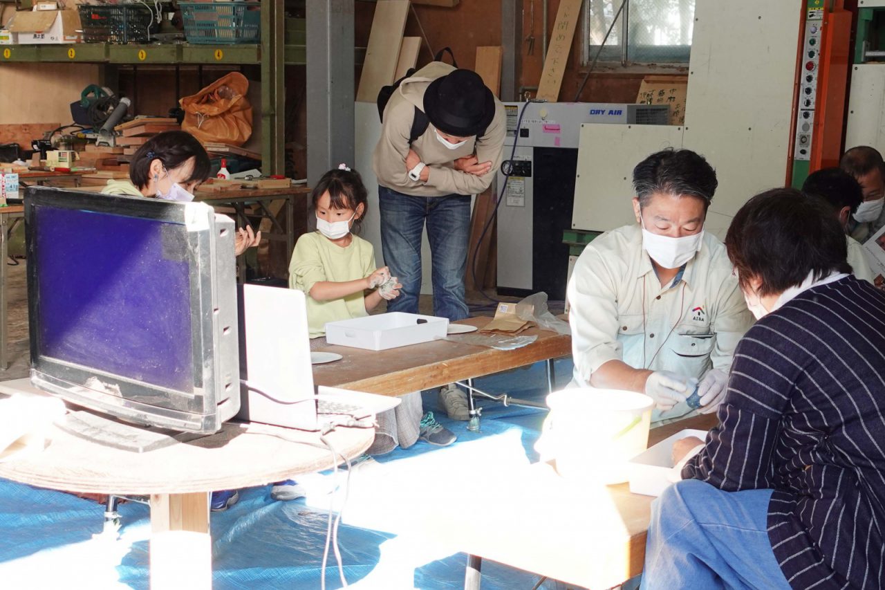 相羽建設の加工場にて開催された「手しごと広場」。コロナ渦以前は、この加工場で「こども工務店」や「手しごとフェスタ」など、私たちの手仕事をお伝えするイベントを行ってきました。そんなイベントを、今年久しぶりに開催しました。
