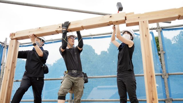 いとう家を担当していただく棟梁の小林優太さんを中心に、7人の若手大工さんたちによりできあがっていく骨組み。木の香りやトンカン組み立てる音、大工さんたちの元気の良い掛け声が聞こえてきて、活気溢れる現場でした!