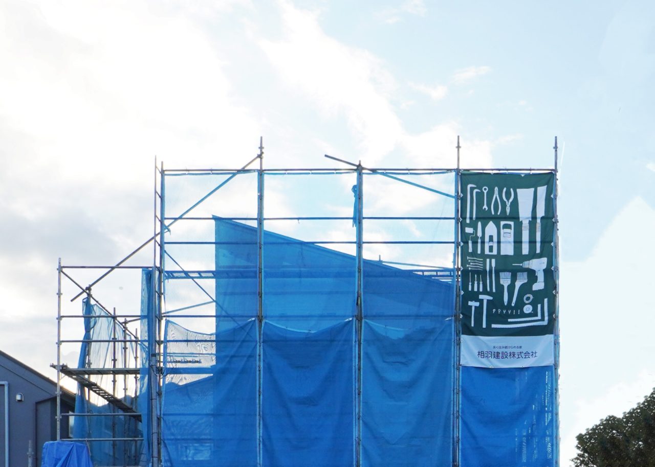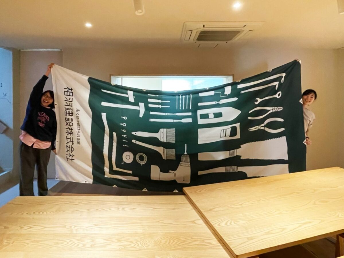 職人の道具柄で木と手仕事の工務店らしい現場シートに