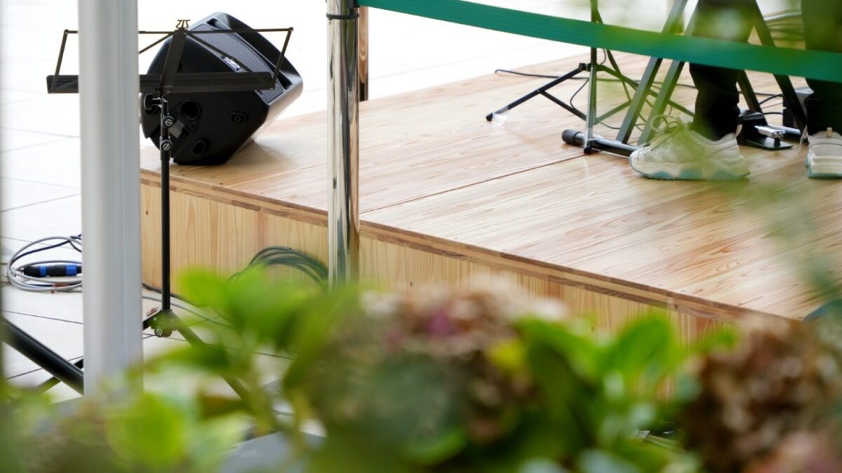 ステージは裏手の常設ベンチの高さにあわせてつくられていて、会場と一体化したような自然な場所になっていました。