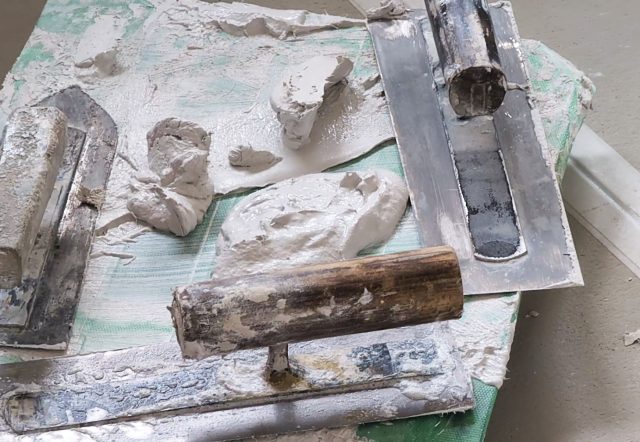 まず、練った左官材をコテに乗せるのが難しい!緊張しすぎて手が筋肉痛を起こしそうです。