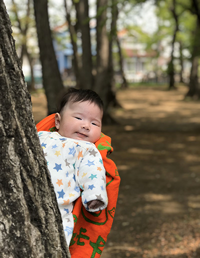 休みの日、子どもの予防接種に行った後、家族3人で自宅の前の公園にプチ散歩をしました。