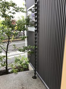 玄関の縦樋をクサリトイ(ensui)でおさめました。