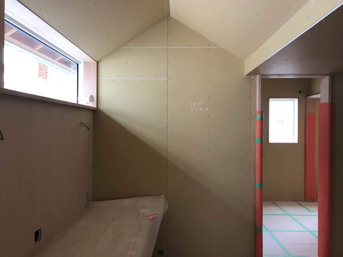 ハイサイドライトで光を取り込み、三角の天井で受け止めるという採光の工夫をしているとのことです。