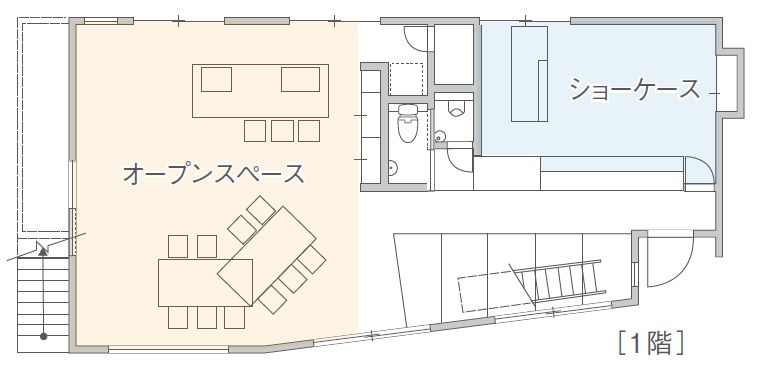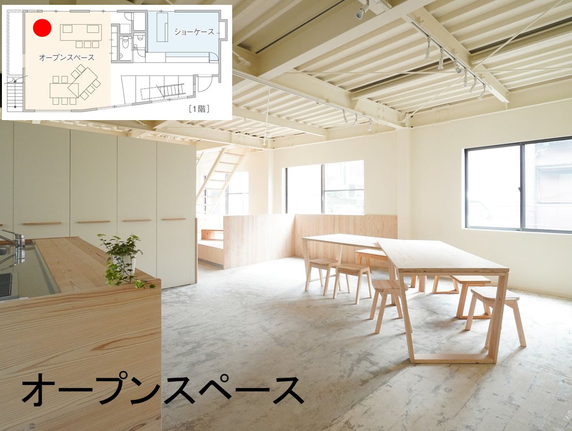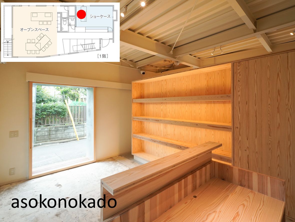 一階は、「オープンスペース」と「asokonokado」(あそこのかど)というギャラリーや期間限定のお店を開けるスペース。