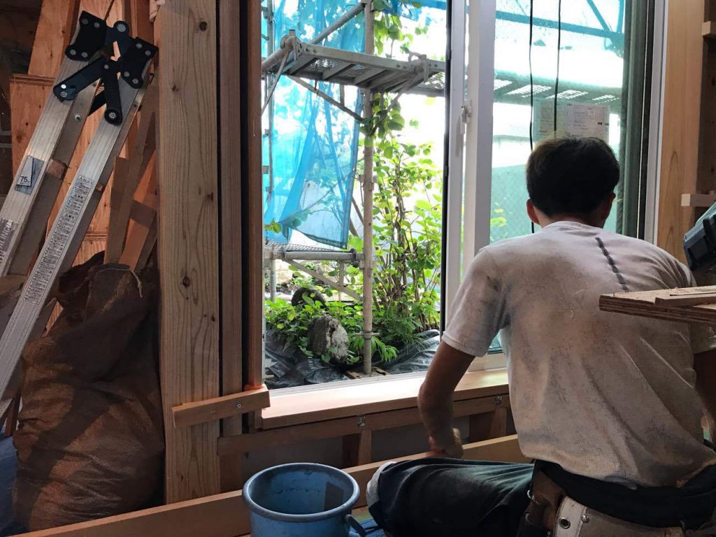 伊礼智さん設計の浜田山の家は、大工さんによる造作工事中
