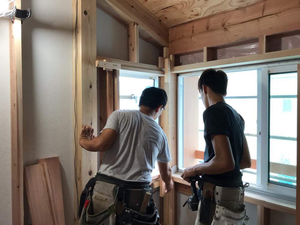 6年目の長井大工も造作工事を担当している。