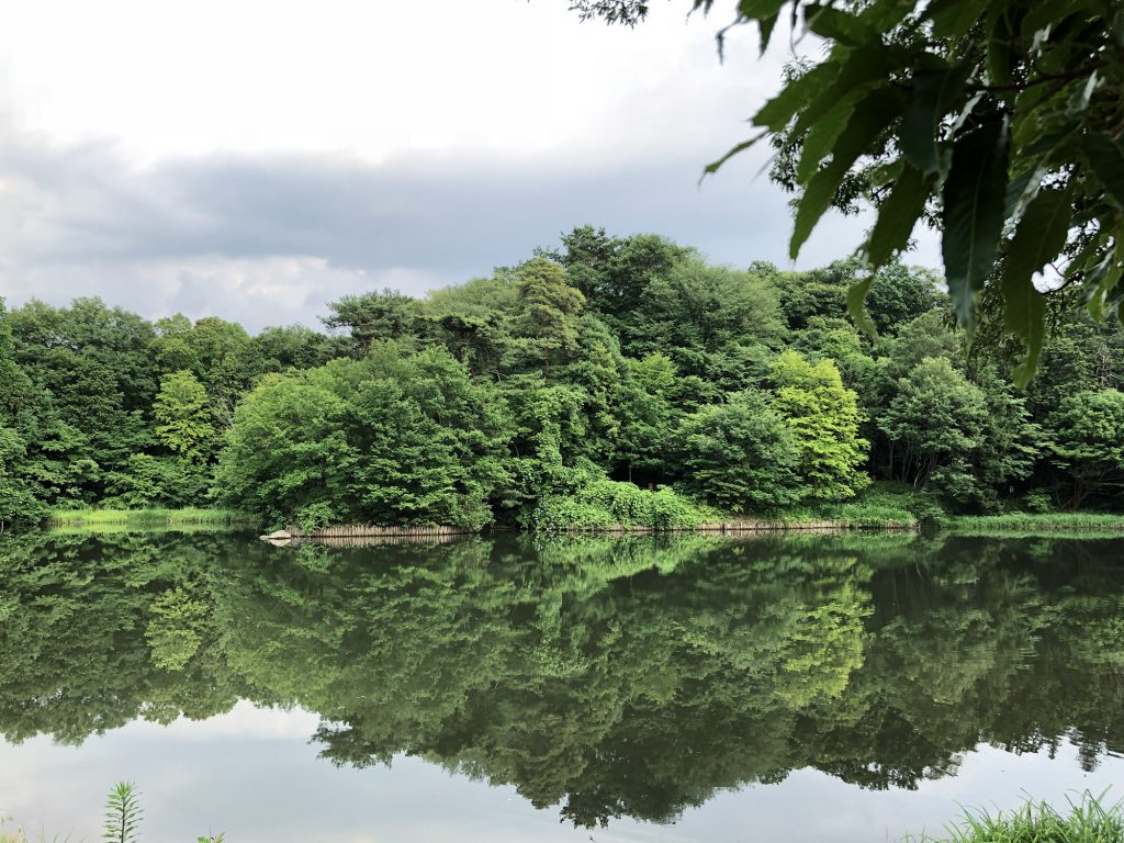 狭山公園にある宅部池。風が少ない日は森の樹々を池の水が鏡面のように映し出します。夏には蛍もたくさん見られて、ランニングをしていて楽しい場所。