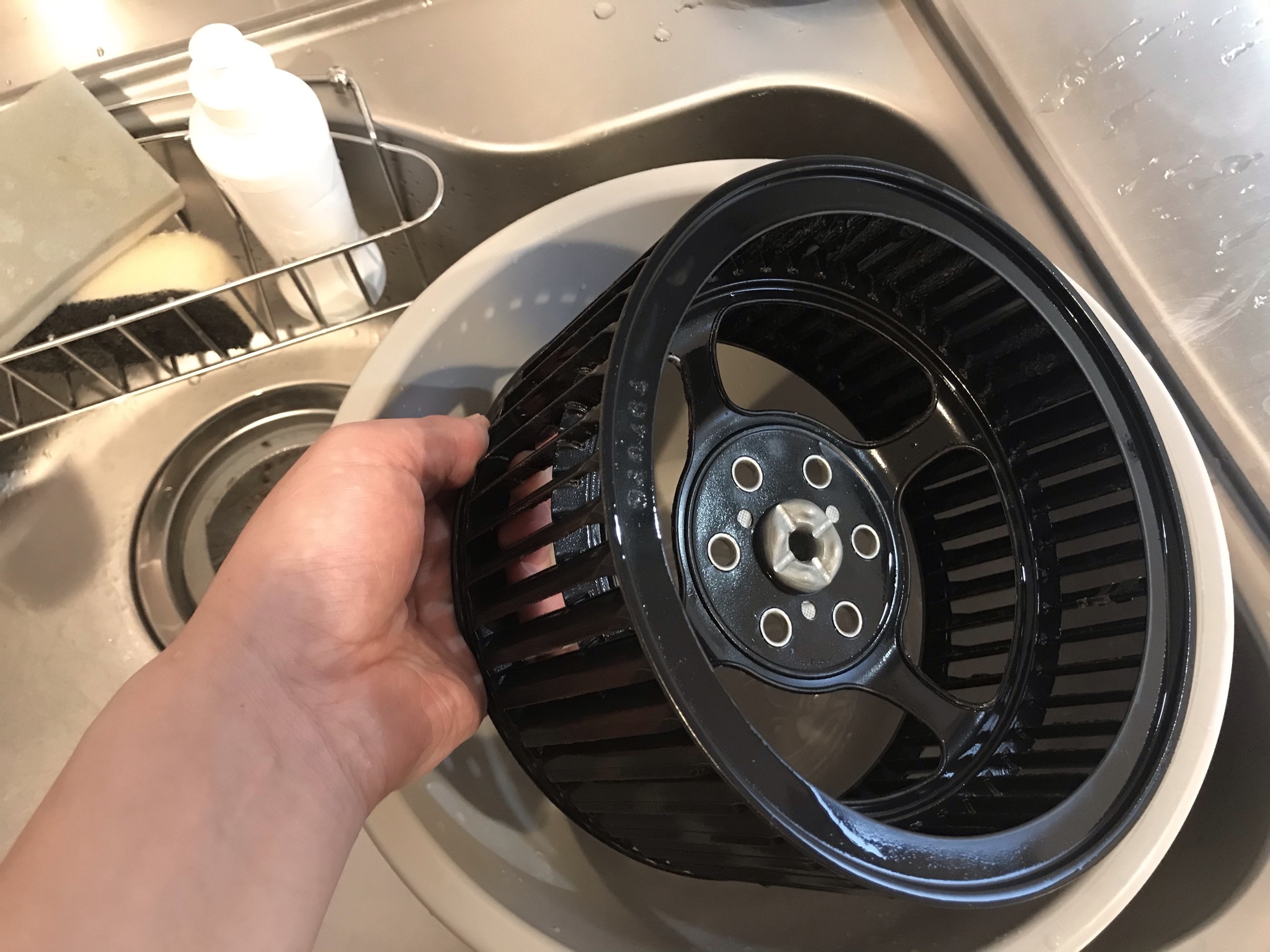 きれいにはなりましたが、外側の羽根の部分にまだまだ汚れが残っています。