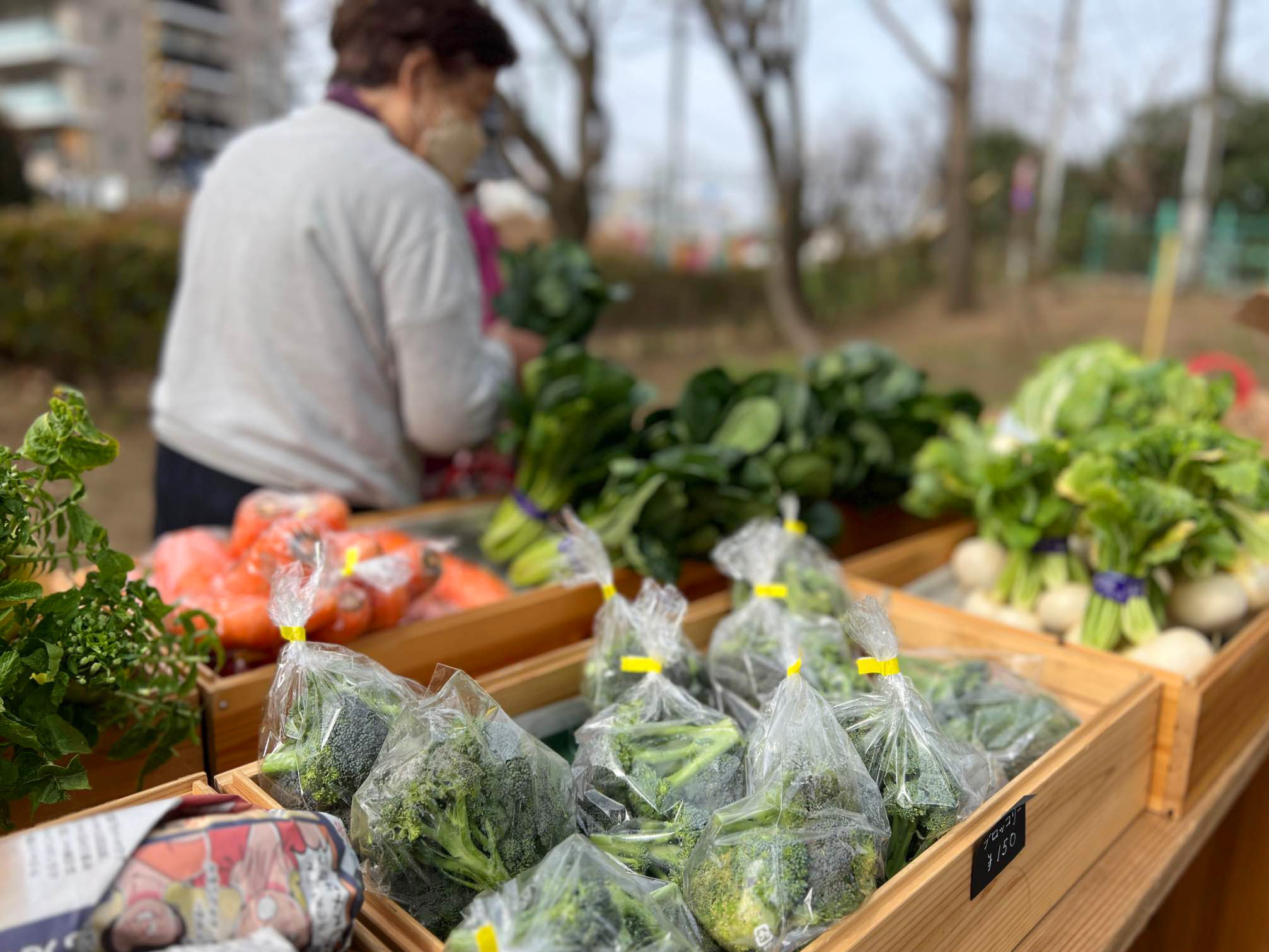 公園指定管理と共に始まる自主事業の第一弾として野菜マルシェを開催しました。