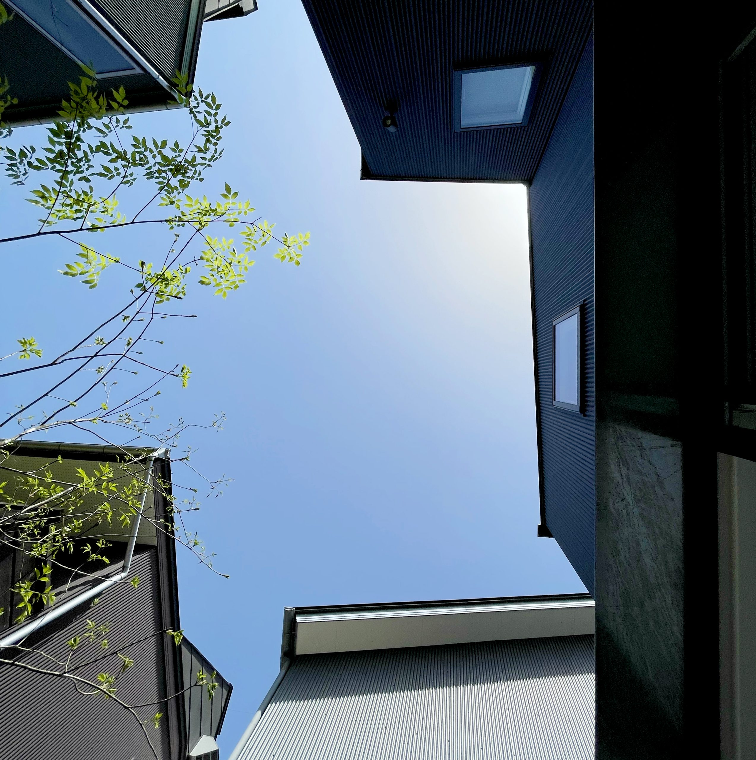 そしてこれは住みはじめた後に発見したのですが、デッキに寝転んだ時にだけ見える、ぽっかりと開けた綺麗な空!
