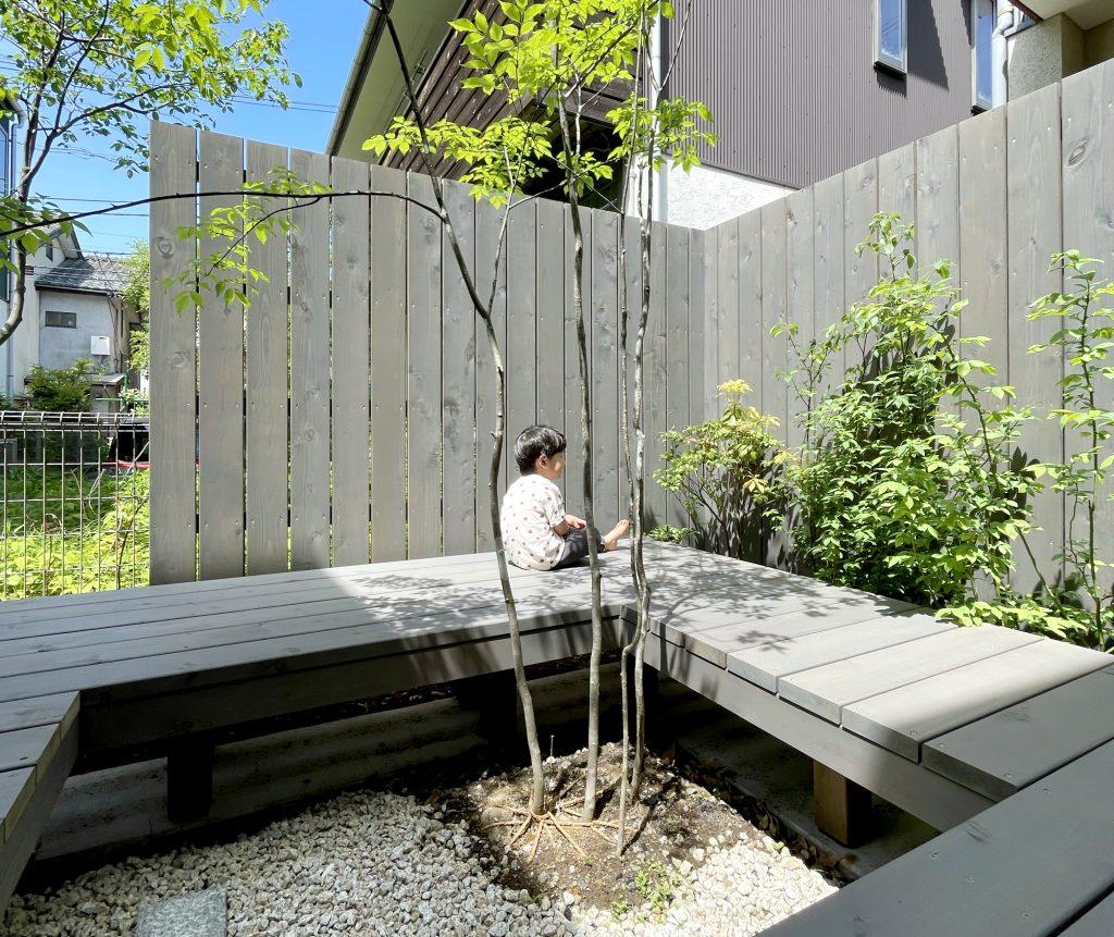 この家を設計した小泉誠さんが、デッキで心地よく過ごせるようにと考案してくださいました。