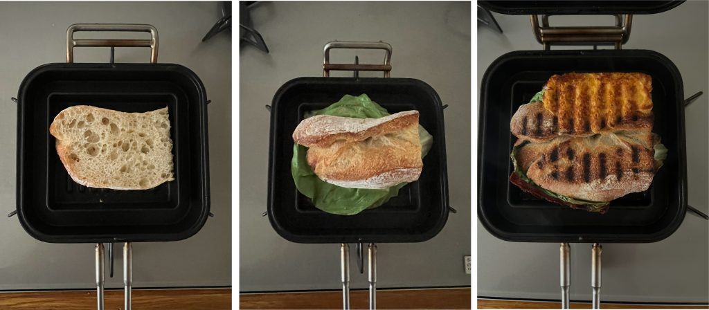 両面がカリッカリに仕上がるフランスパンのホットサンドはハード系が好きな方にはたまらないと思います。