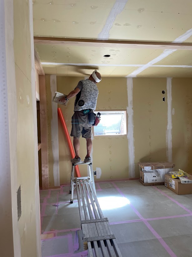 そんなお休みの間も、秋津町ではクロス工事を進めていただいておりました。 (うしろめたい、、)