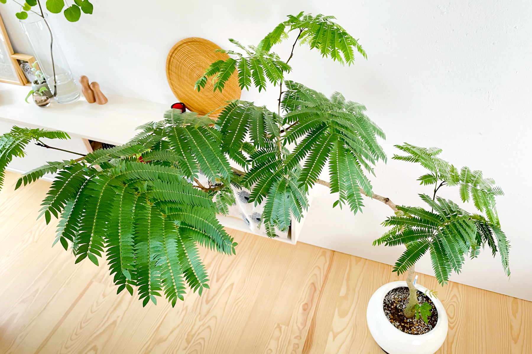 売り場にちょうど良い大きさの株がありましたが、枝が真上にきれいに伸びている株と、横方向に伸びているちょっと変わった形の株とで悩んでいたところ、事前に我が家の空間を把握していた布施さんから「いとう家なら横方向が映えるよ!」と背中を押していただき横タイプを選びました。