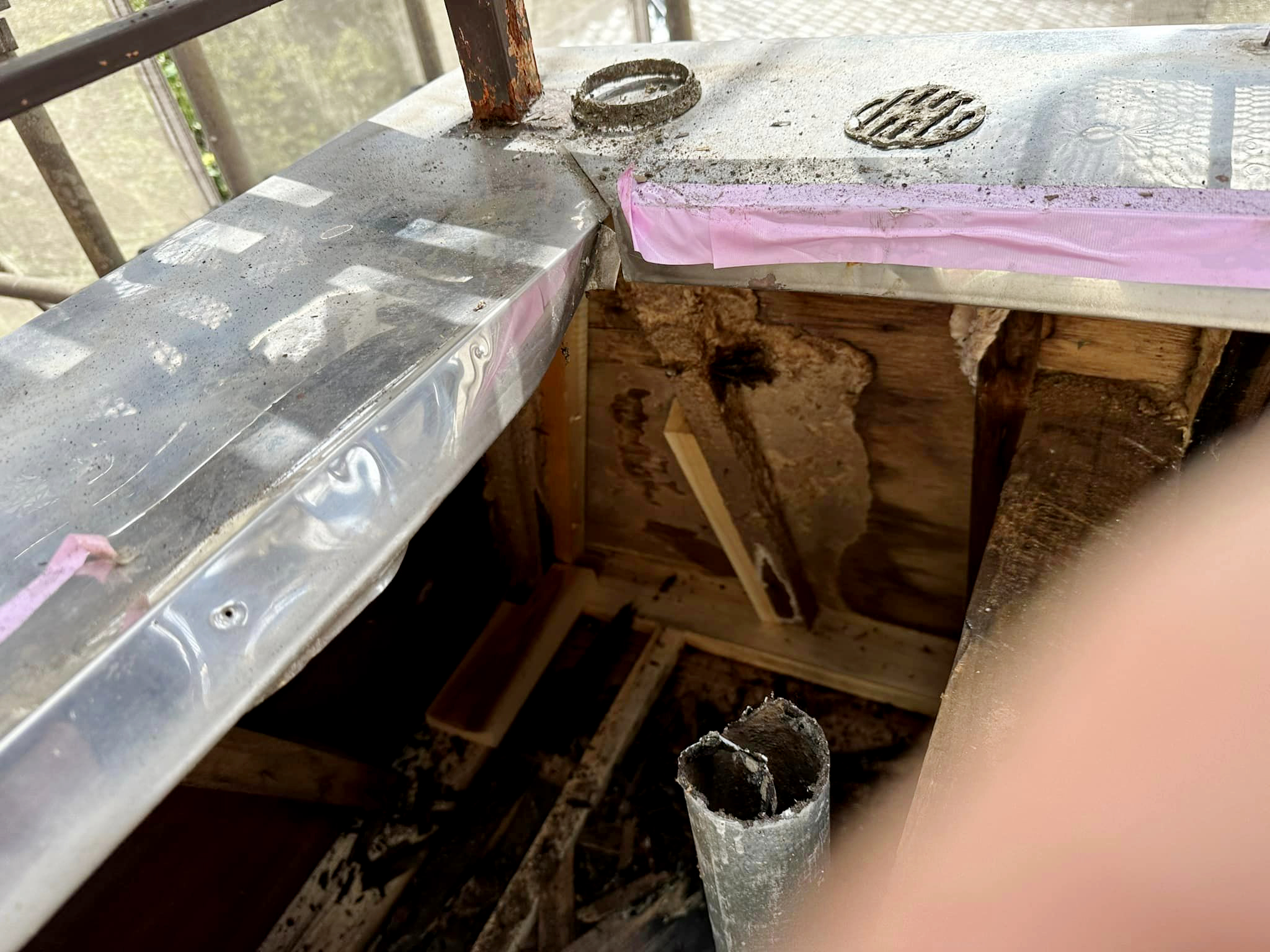 雨漏りしていた箇所の根太などいろいろなところが腐っていて全部入れ替える作業をしました。