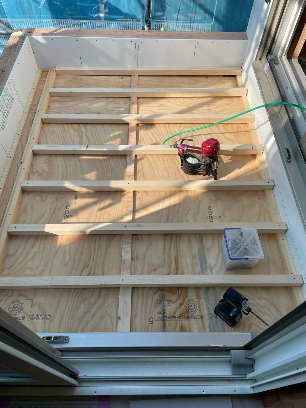 今週はバルコニーや胴縁(外壁の下地)の施工をおこなっています。