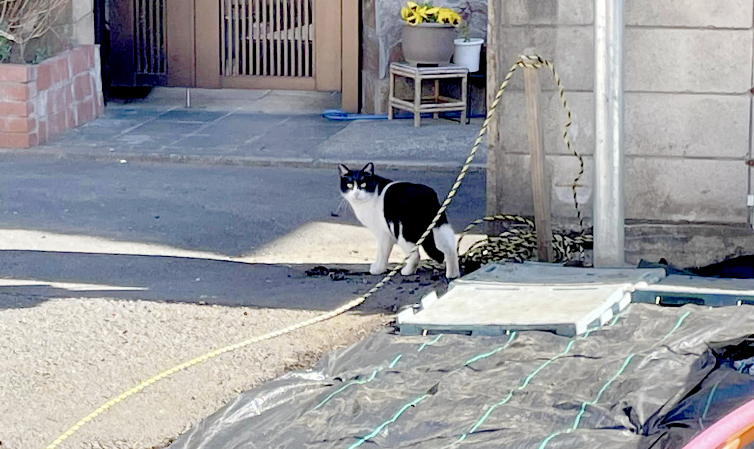 防草シートを敷き終わった頃にネコちゃんが遊びに来てくれました。