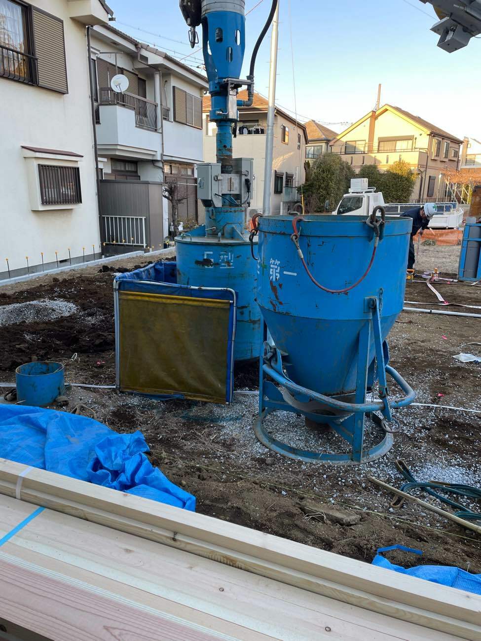 さらに、5号棟は基礎着工に先立ち、地盤改良工事を行いました。