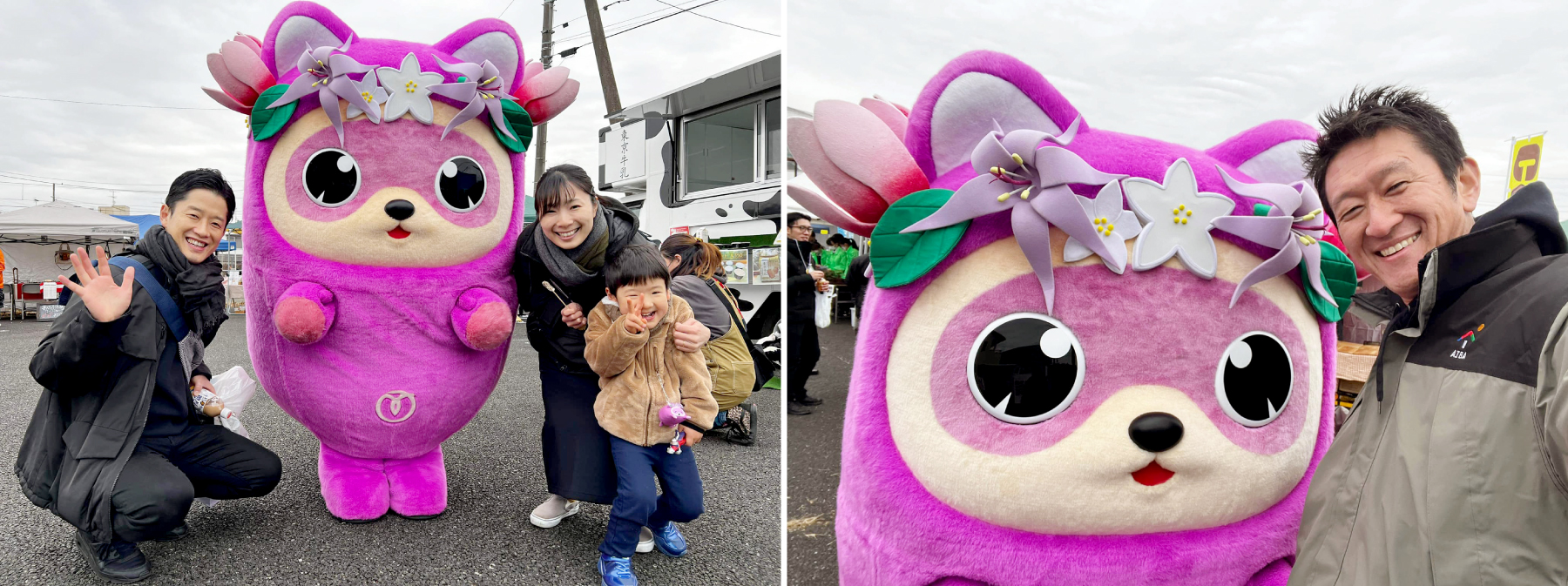 瑞穂町のキャラクター「瑞穂丸(みずほまる)」と一緒に写真を撮っていただいたり、息子もガチャポンをしたり、楽しい時間を過ごさせていただきました。