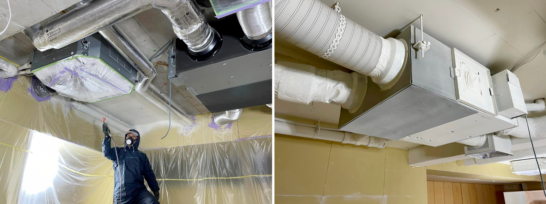 今回は天井と露出している配管の塗装工事のご紹介です。