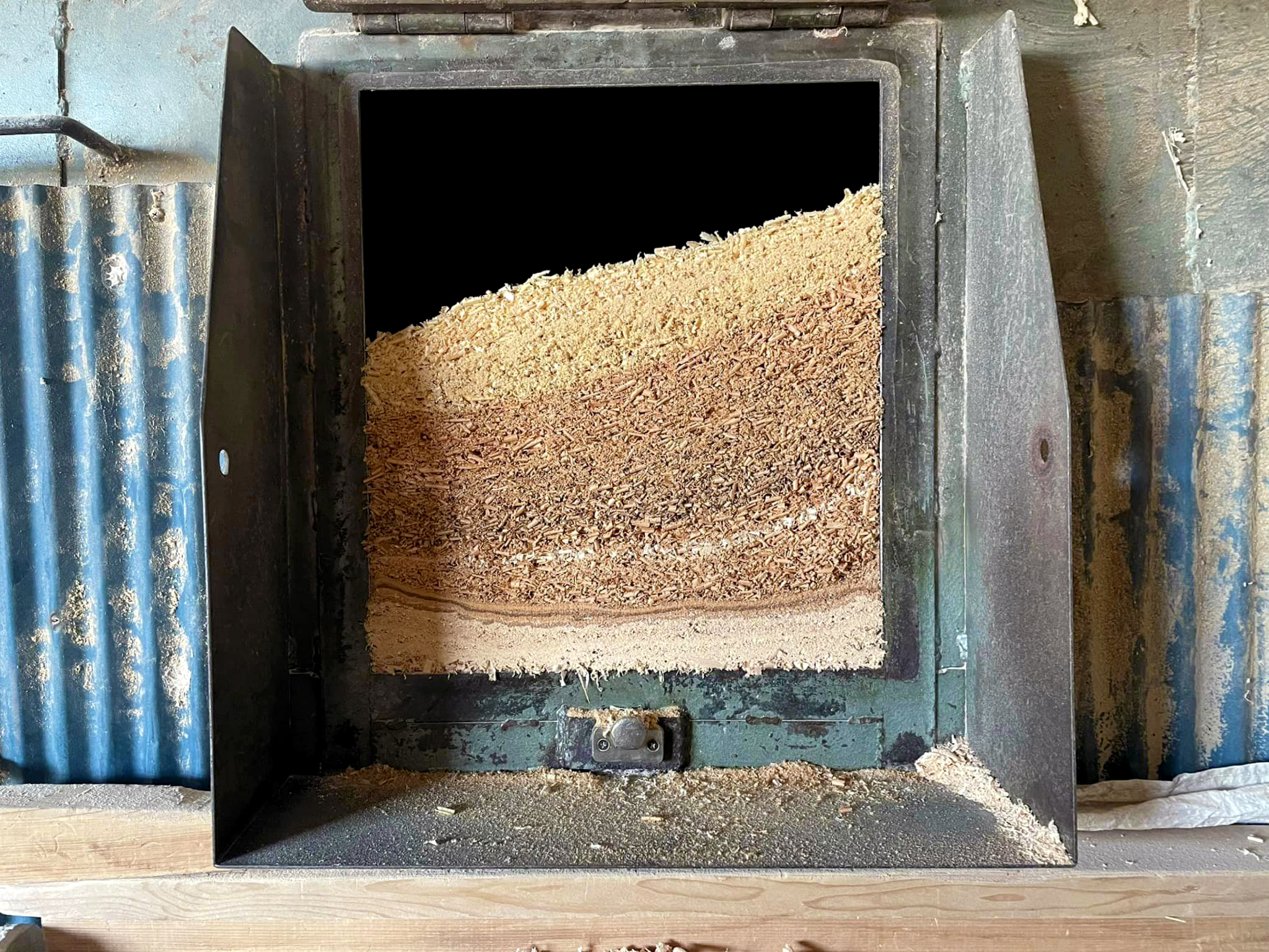 最後に集塵機の掃除をしようと蓋をあけたら、桧、山桜、杉の見事な層ができていました!
