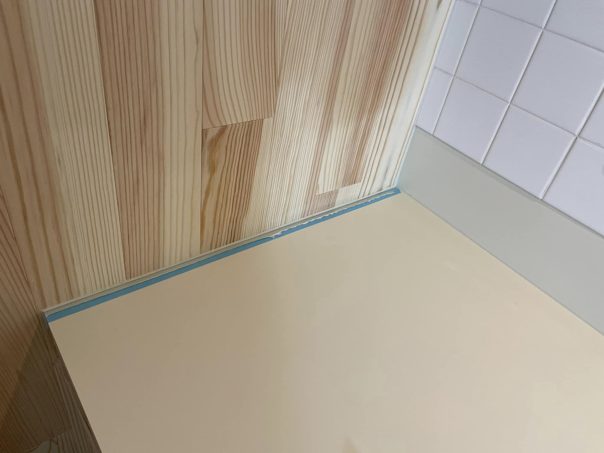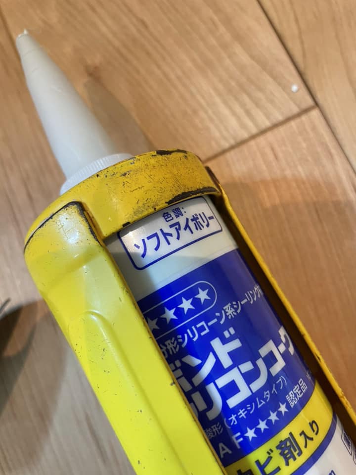 アイボリー色のメラミンを採用したので隙間のコーキングはアイボリー色が定番ですが、色が濃すぎるので新種の「ソフトアイボリー」にしてみましたら隙間のコーキングが主張し過ぎずとても良い仕上がりになりました。