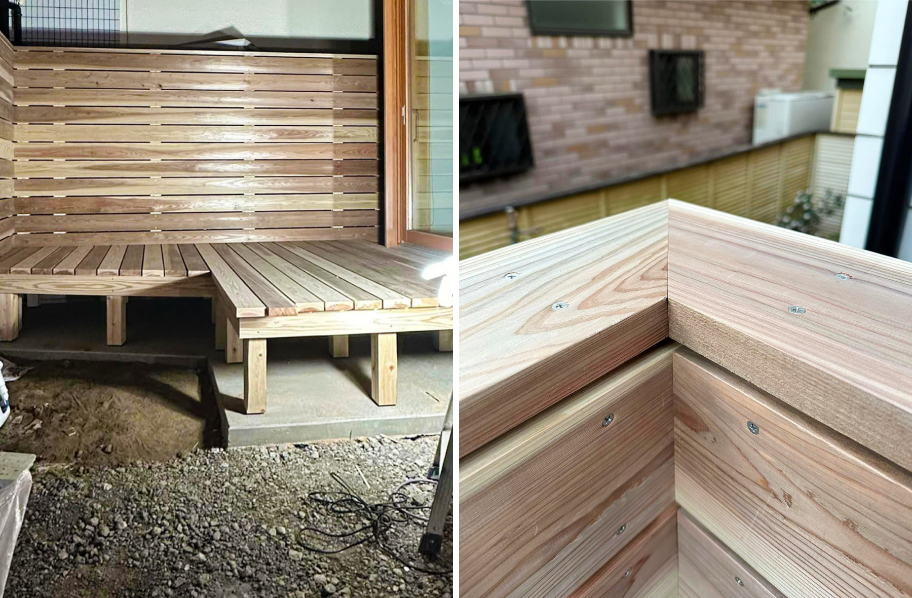 デッキと板塀工事の様子