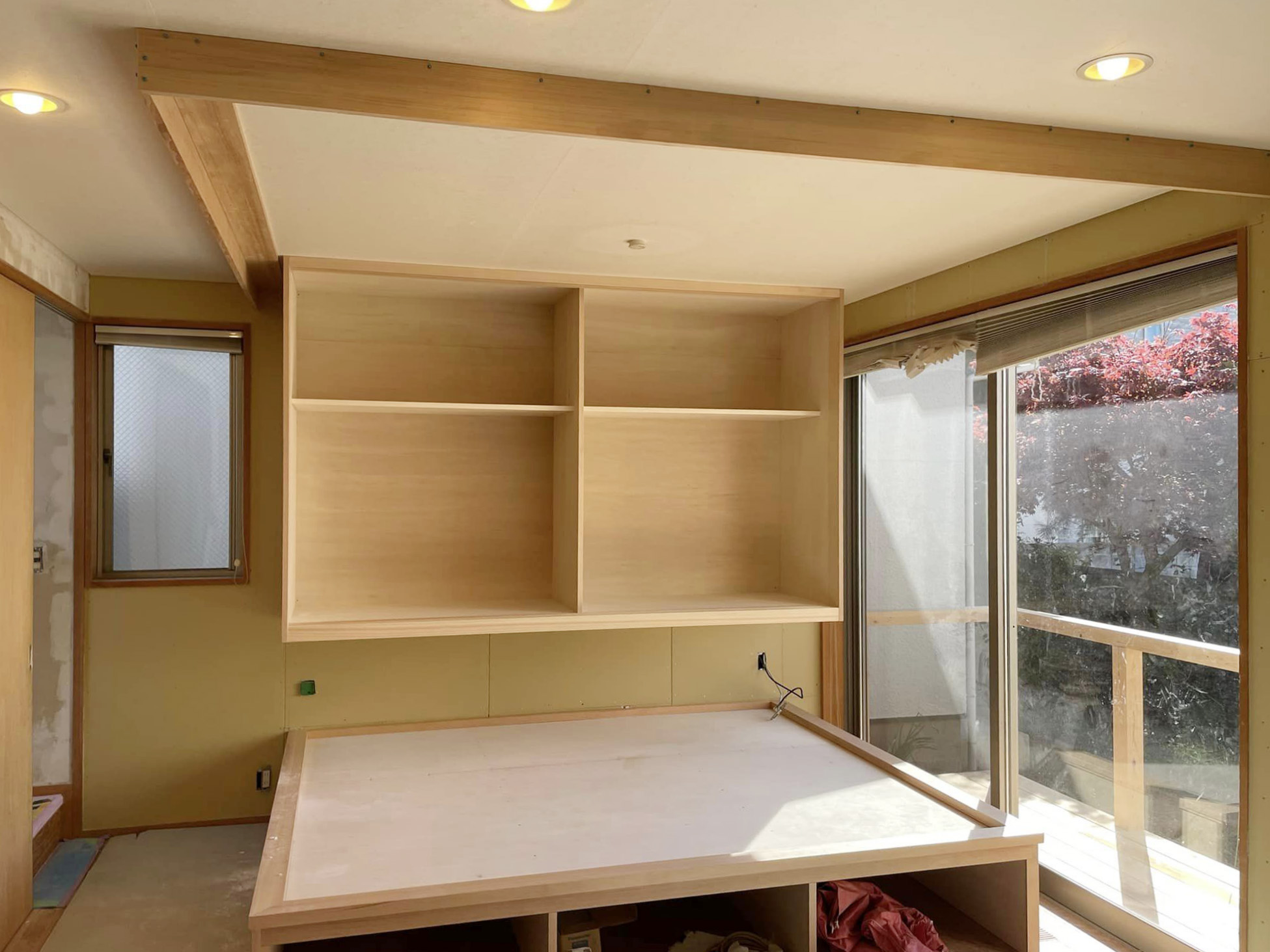 木部の塗装も終わり、クロス工事を進めております。