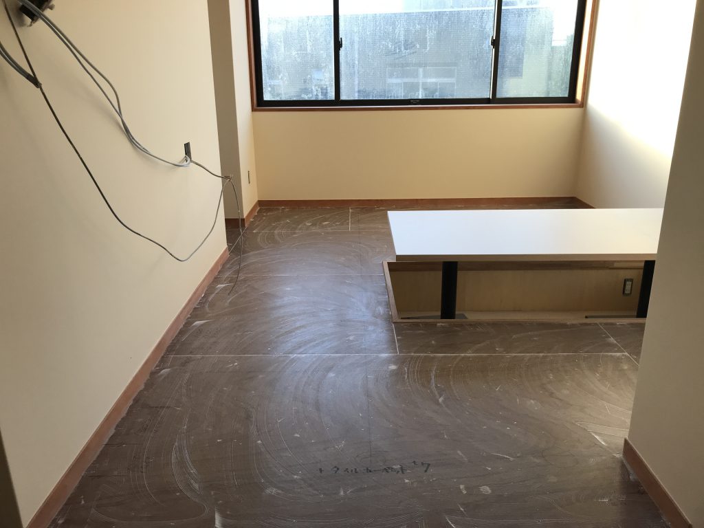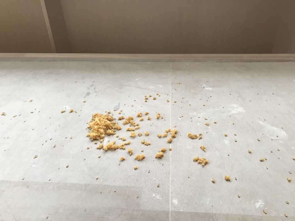 職人さんが箒で埃を集める際に、何やら撒いています。