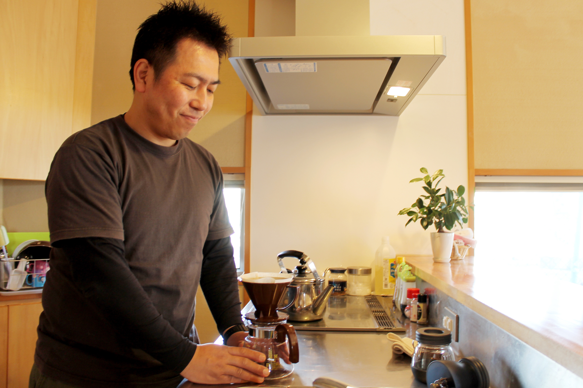 キッチン本体は大工さん、引出しや扉は建具屋さん、天板は毎回メーカーにオーダーします、