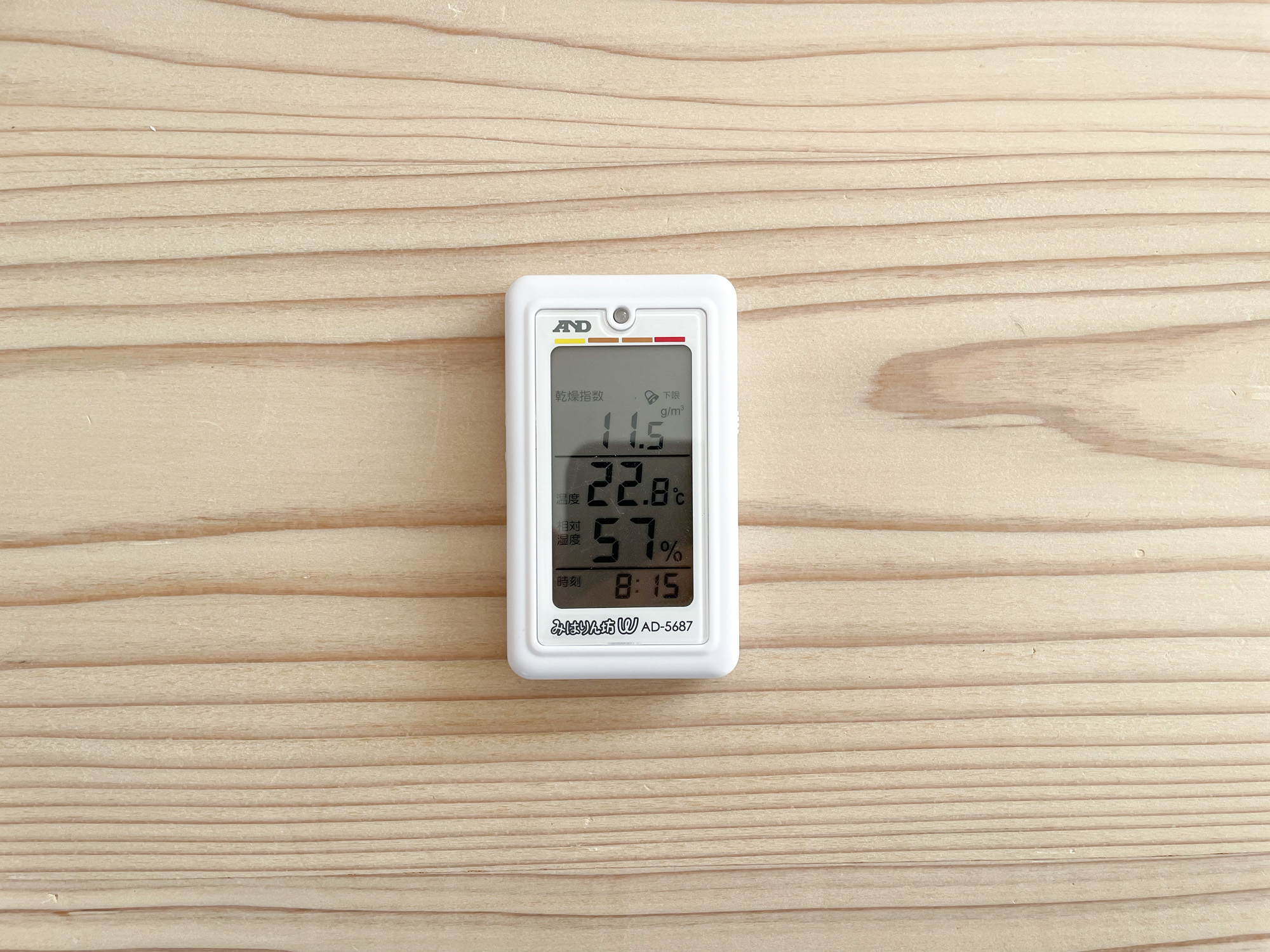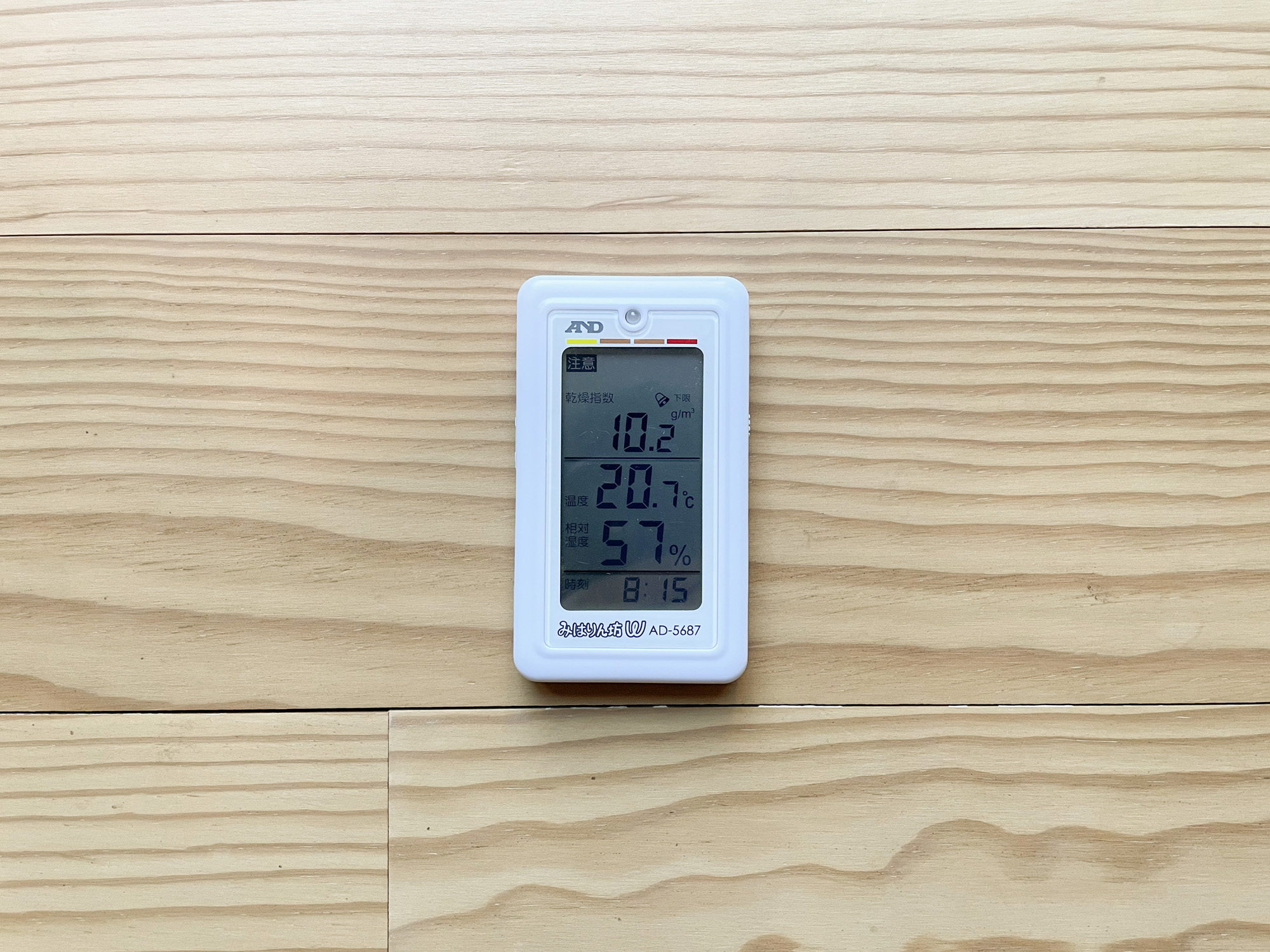 「絶対湿度(乾燥指数)」は単位は量(g/㎡)になっていて、1立法メートルに含まれる水蒸気の重さを示しているため、空気中に含まれる【水蒸気自体の量が多い/少ない】で判断できます。住宅環境において湿度管理をする際に、絶対湿度(乾燥指数)を8〜13g/㎡にすると良いそうです。