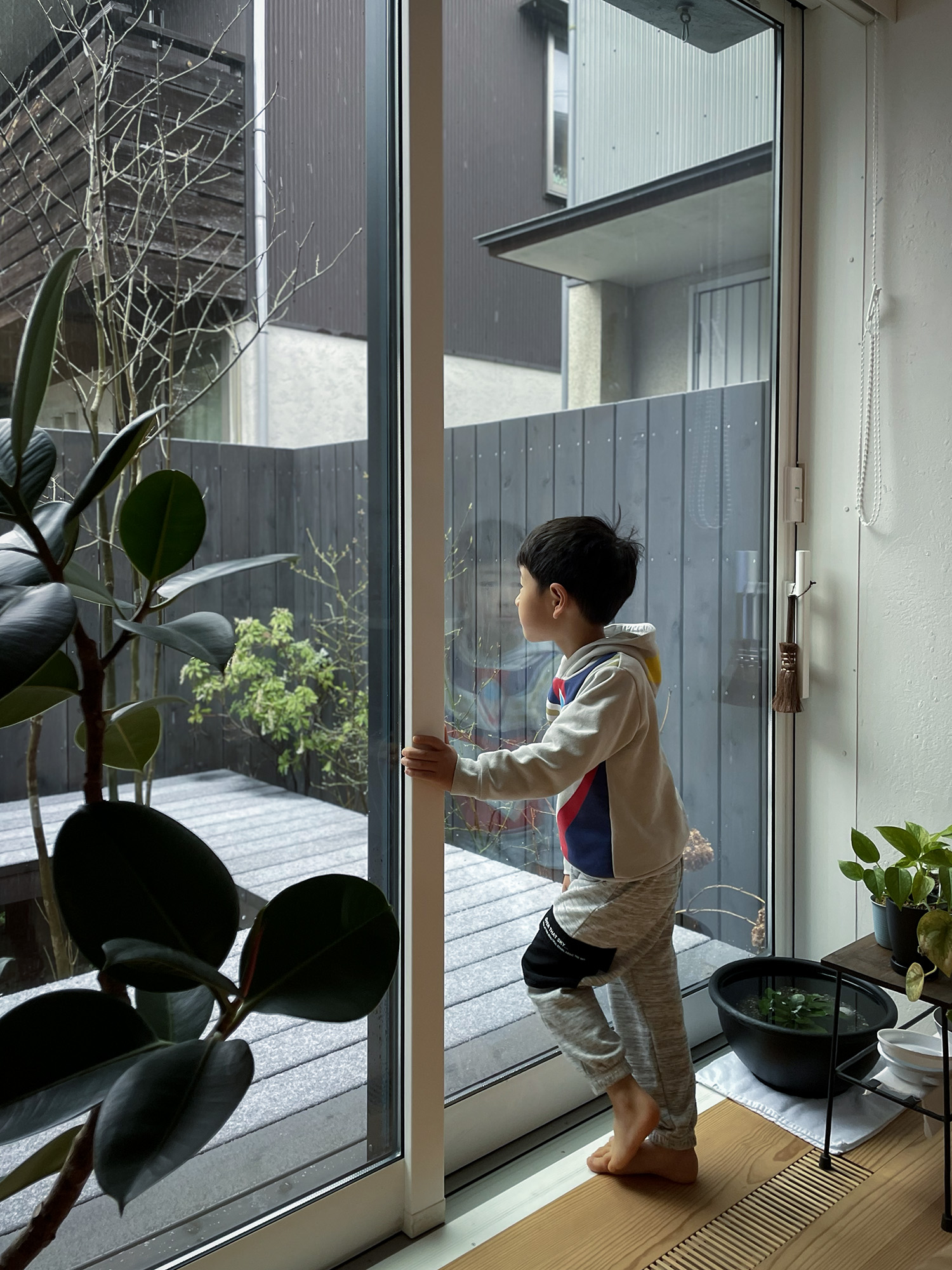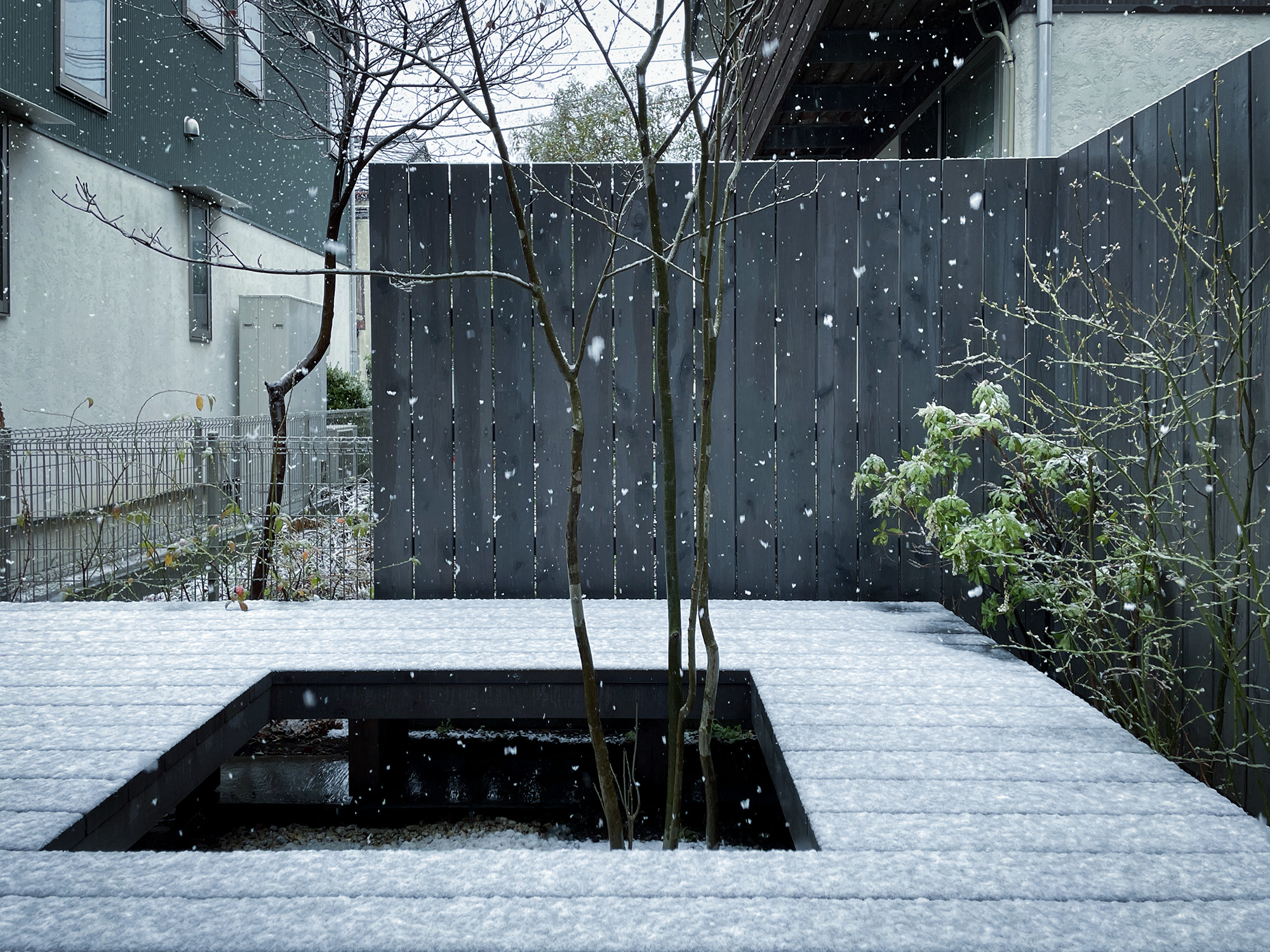 ちょうどこの日は家族で都内に用事があり、おでかけ予定だったのですが、少し降り始めた雪がしばらくするとウッドデッキに積もっていました。