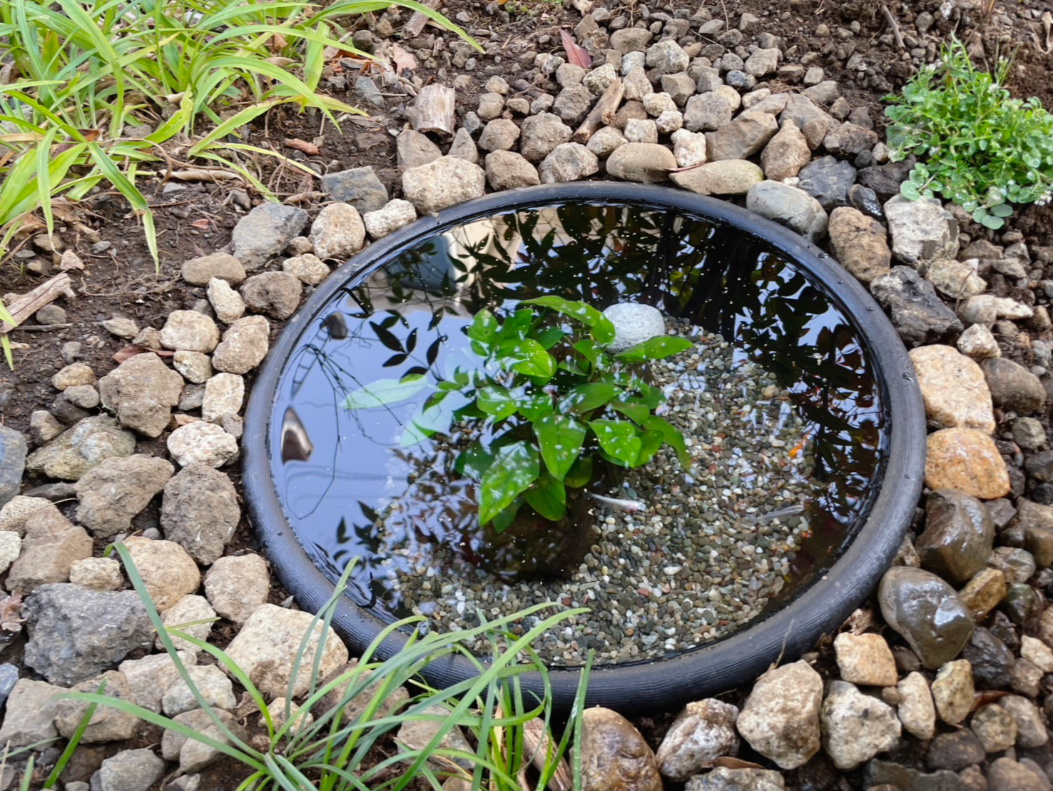 しばらく前から「いとう家」で奥様が庭で計画してきていた「ビオトープ」づくりが実現しました。