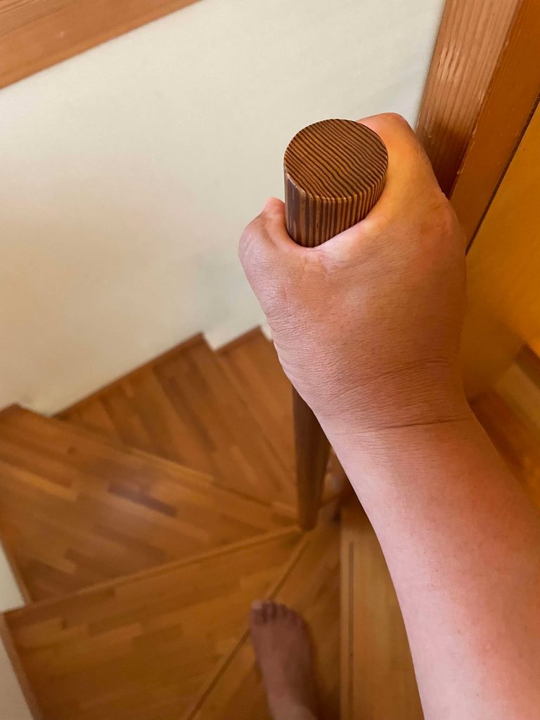 みんな、この縦の手すりを握って階段の内側を降りていくからじゃないかと。