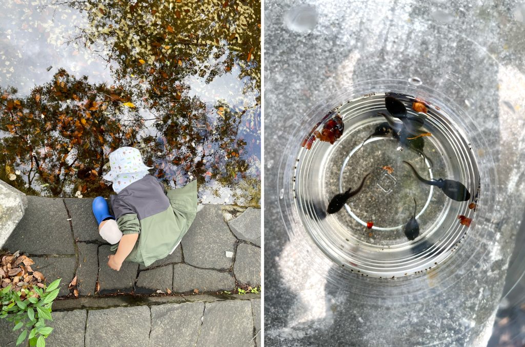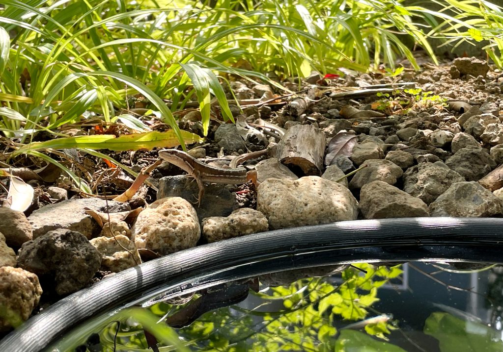 カナヘビやダンゴムシなど多様な生き物が水を飲みにくる様子を観察できるようになりました。ダンゴムシ大好きな長男も嬉しそうです。