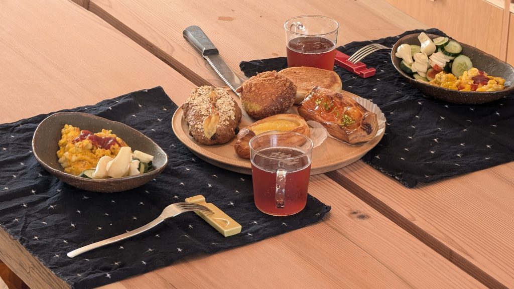 地域の美味しいものたちがこの大きなテーブルに並んで、のんびりとした週末を過ごしています。