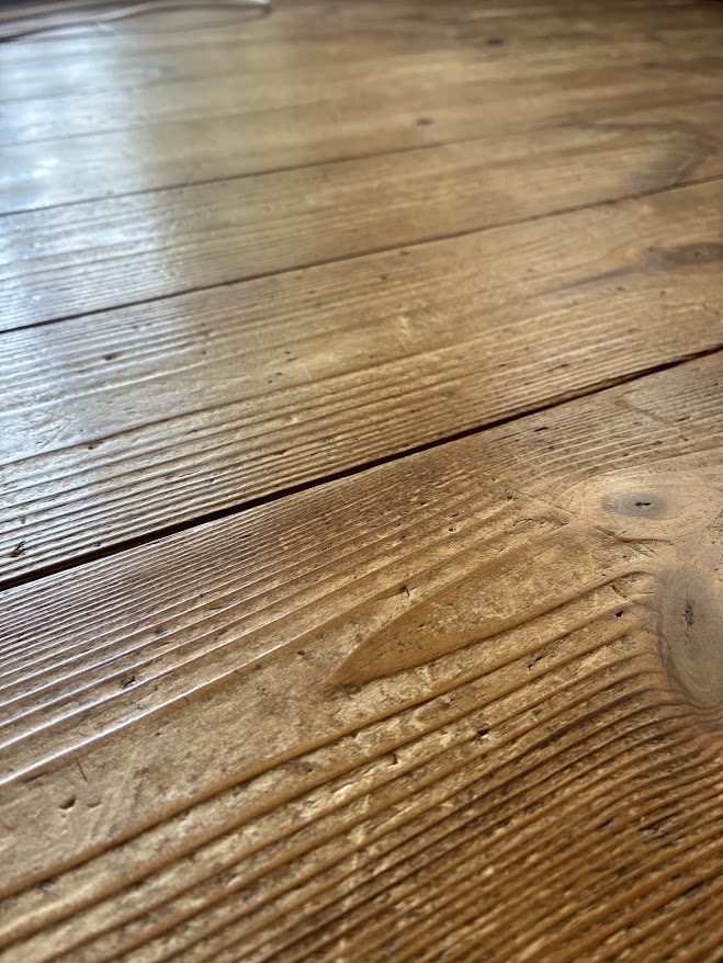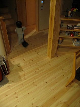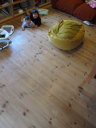 無垢とは貼り合わせてない一枚ものという意味なので、うちならパイン材の無垢床という言い方になります。