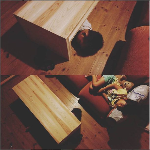 ちょうど一年半くらい。長女3歳長男0歳。息子はハイハイをし出して、キズや凹みも良い感じに~